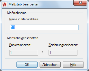 Geben Sie einen beschreibenden oder numerischen Namen ein. In einer architektonischen Zeichnung mit einem typischen britischen Maßstab können Sie beispielsweise 1"=4' oder 1:48 eingeben.