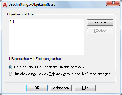 Fügt unterstützte Maßstäbe für das ausgewählte Beschriftungsobjekt hinzu oder löscht sie.