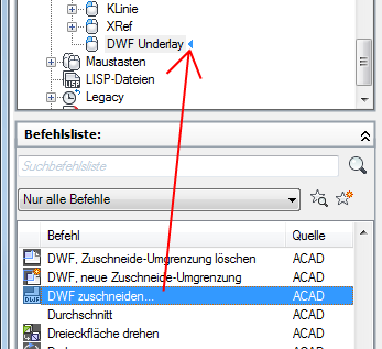 - Ziehen Sie im Bereich Befehlsliste den Befehl, den Sie der Doppelklickaktion hinzufügen möchten, in den Bereich Anpassungen in <Dateiname>.