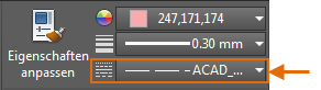Wenn Sie den globalen Skalierfaktor ändern, ändert sich die Darstellung aller Linientypen in der Zeichnung.