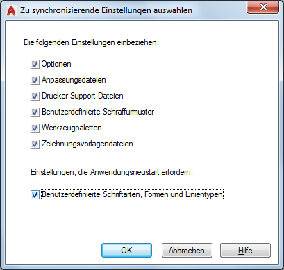 Synchronisiert Benutzerprofile und alle anderen im Dialogfeld Optionen angegebenen Einstellungen.