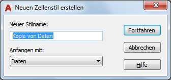 Gibt einen Namen für einen neuen Zellenstil sowie einen vorhandenen Zellenstil an, auf dem der neue Stil basieren soll.