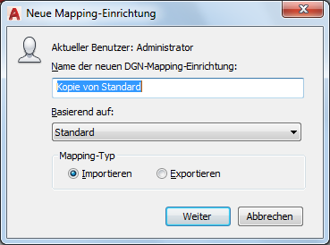 Richtet das Mapping für den Import und Export von DGN-Dateien ein.