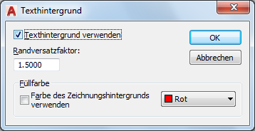 Gibt den Textrand für den undurchsichtigen Hintergrund an. Der Wert basiert auf der Texthöhe. Der Faktor 1.0 entspricht exakt dem Absatztextobjekt. Der Faktor 1.5 erweitert den Hintergrund um das 0,5fache der Texthöhe.