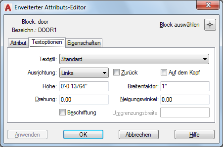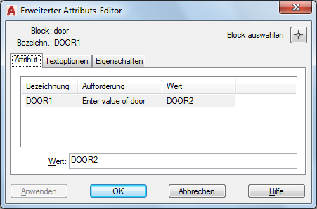 Der Name des Blocks, dessen Attribute Sie bearbeiten.
