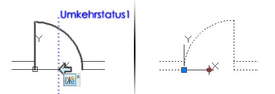 Eine Umkehraktion spiegelt ausgewählte Objekte in einer dynamischen Blockreferenz um eine angegebene Spiegelachse.