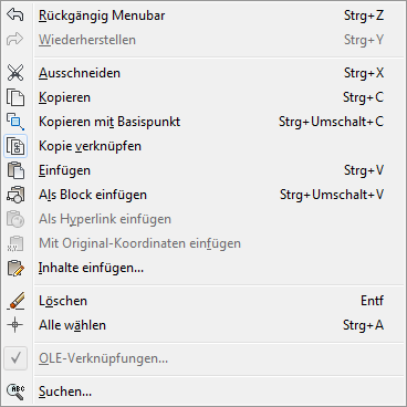 Die Art und Weise, mit der ein Menüelement angezeigt wird, gibt seine Verfügbarkeit im Programm an.