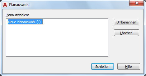 Benennt gespeicherte Planauswahlen um oder löscht gespeicherte Planauswahlen.