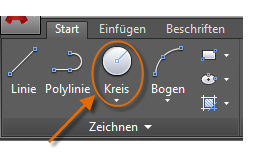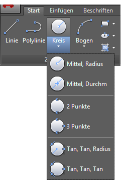 Die vorgegebene Option für den Befehl KREIS erfordert die Angabe eines Mittelpunkts und eines Radius.