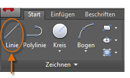 Eine Linie ist das einfachste und häufigste Objekt in AutoCAD-Zeichnungen. Zum Zeichnen einer Linie klicken Sie auf das Werkzeug Linie.