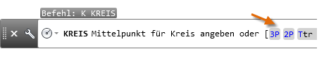 Alternativ können Sie auch KREIS oder nur K im Befehlsfenster eingeben und eine Option durch Klicken auswählen. Wenn Sie dies tun, können Sie einen Mittelpunkt angeben, oder Sie können auf eine der hervorgehobenen Optionen klicken, wie unten gezeigt.