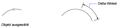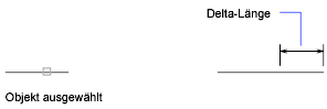 Verändert die Länge eines Objekts um einen festgelegten Einschub, gemessen vom Endpunkt, der dem Auswahlpunkt am nächsten ist. Delta verändert außerdem den Winkel eines Bogens um einen festgelegten Einschub, gemessen vom Endpunkt, der dem Auswahlpunkt am nächsten ist. Ein positiver Wert steht für Dehnen, ein negativer Wert für Stutzen.