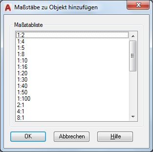 Verwenden Sie den Befehl MSTABLISTEBEARB, um der Liste benutzerdefinierte Maßstäbe hinzuzufügen.