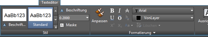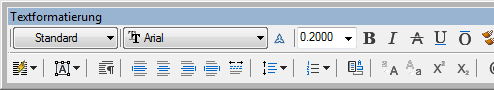 Anmerkung: Die Systemvariable MTEXTTOOLBAR steuert die Anzeige des Werkzeugkastens Textformatierung.