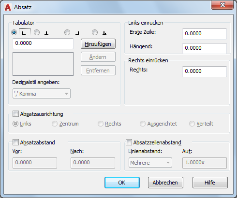 Legt die Einrückung von Absätzen und die erste Absatzzeile fest.