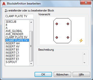 Zeigt die Beschreibung der ausgewählten Blockdefinition an.