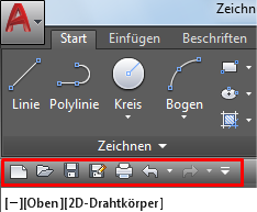 Platzieren Sie den Schnellzugriff-Werkzeugkasten mit der Schaltfläche Benutzeranpassung entweder oberhalb oder unterhalb der Multifunktionsleiste.