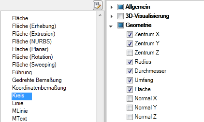 Wenn eine Eigenschaft ausgewählt ist, wird die Eigenschaft in einer mausabhängigen QuickInfo angezeigt, sobald der Mauszeiger über ein Objekt des ausgewählten Objekttyps im Zeichnungsfenster geführt wird. Heben Sie die Auswahl einer Eigenschaft auf, wenn diese Eigenschaft nicht für den ausgewählten Objekttyp angezeigt werden soll.
