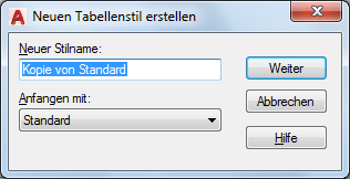 Öffnet das Dialogfeld Neuer Tabellenstil, in dem Sie den neuen Tabellenstil definieren können.