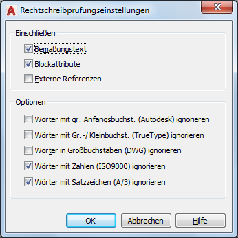 Legt bestimmte Textoptionen fest, die in der Zeichnung überprüft werden.