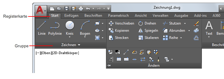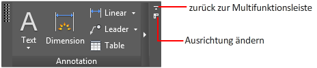 Die Multifunktionsleiste enthält eine kompakte Palette aller Werkzeuge, die Sie zum Erstellen oder Ändern einer Zeichnung benötigen. Sie kann an den folgenden Positionen platziert werden: