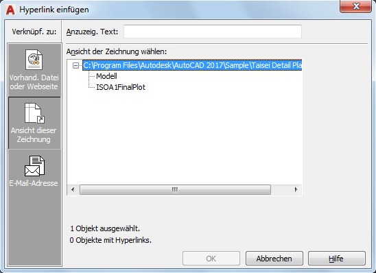 Legt eine benannte Ansicht in der aktuellen Zeichnung fest, zu der eine Verknüpfung erstellt wird.