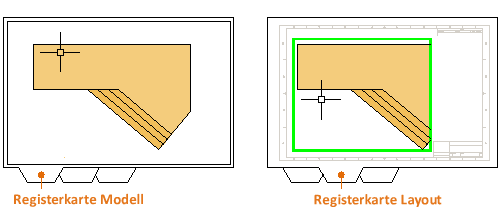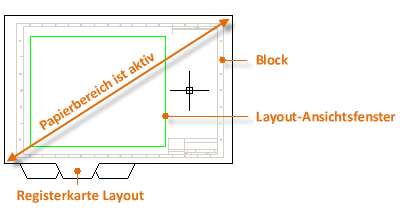 Wichtig: Sie können zwischen dem Papierbereich und dem Modellbereich wechseln, indem Sie in das Layout-Ansichtsfenster oder auf eine Stelle außerhalb des Layout-Ansichtsfensters klicken.