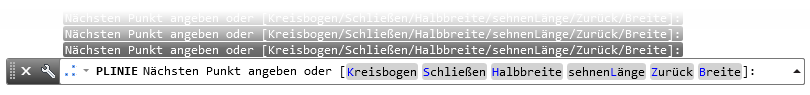 - 2. Im Kontextmenü wird ein Protokoll der letzten Eingaben für den aktuellen Befehl angezeigt.