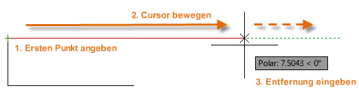 Legt den Endpunkt des Liniensegments fest. Sie können auch Spurverfolgung und Objektfangspur zusammen mit der direkten Abstandseingabe aktivieren.