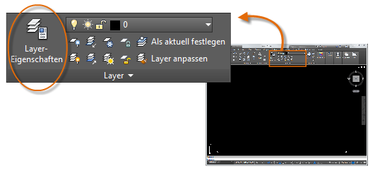 Um zu sehen, wie Sie eine Zeichnung strukturiert ist, verwenden Sie den Befehl LAYER, um den Layereigenschaften-Manager zu öffnen. Sie können in der Befehlszeile entweder LAYER oder LA eingeben, oder Sie können in der Multifunktionsleiste auf das Werkzeug Layereigenschaften klicken.