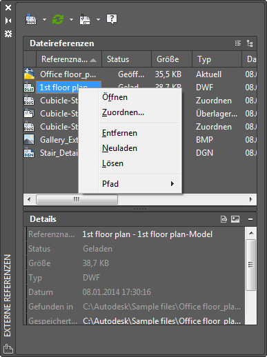Wenn die betreffende Referenz zugeordnete XRefs oder Blockdefinitionen aufweist, werden die Referenz und die verschachtelten Referenzen im Dialogfeld Referenz bearbeiten angezeigt und können ausgewählt werden. Die verschachtelten Referenzen werden nur dann angezeigt, wenn das ausgewählte Objekt zu einer verschachtelten Referenz gehört. Es ist nicht möglich, mehrere Objekte gleichzeitig zum Bearbeiten auszuwählen. Wenn Sie eine Referenz bearbeiten, die OLE-Objekte enthält, werden die OLE-Objekte zwar angezeigt, können jedoch nicht zur Bearbeitung ausgewählt werden.