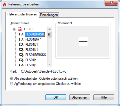 Zeigt eine Voransicht der aktuell ausgewählten Referenz an, wie sie in die Zeichnung zuletzt gespeichert wurde.