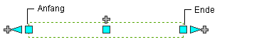 Mithilfe der Start- und Endgriffe können Sie die XYZ-Position des Startpunkts und des Endpunkts eines Segments ändern. Dies macht sie besonders bei den ersten Planungen von Luftkanalstrecken hilfreich, denn Sie können sie einfach dazu benutzen, ein Segment an eine vorhandene Strecke anzuschließen.