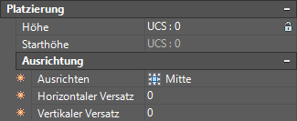 Die folgenden Ausrichtungseingstellungen sind auf der Eigenschaftenpalette verfügbar: