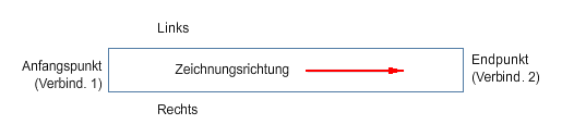 Die Ausrichtung basiert auf der Zeichnungsrichtung von Verbinder 1 (Startpunkt) zu Verbinder 2 (Endpunkt), wie gezeigt: