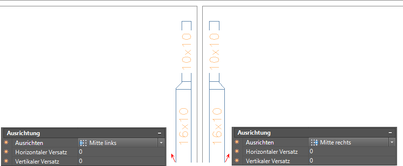 Die Standardausrichtung ist die Mittellinie des Objekts ohne horizontalen oder vertikalen Versatz. Die Mittellinie der sich ergebenden Segmente und Formstücke wird entlang der Punkte platziert, die Sie beim Zeichnen von Rohrstrecken angeben. Die Höhe gibt die Höhenposition der vertikalen Ausrichtung an.