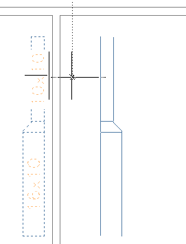 Verwenden Sie den AutoCAD Befehl zum Spiegeln von 2 Objekten auf beiden Seiten einer Wand. In diesem Fall wird die Ausrichtung basierend auf der Ausrichtung des Objekts zur Wand angepasst. Die beiden folgenden Beispiele veranschaulichen gespiegelte Luftkanäle/-rohre. Das erste Beispiel zeigt die Anwendung des Befehls SPIEGELN auf den ersten Luftkanal bzw. das erste -rohr.