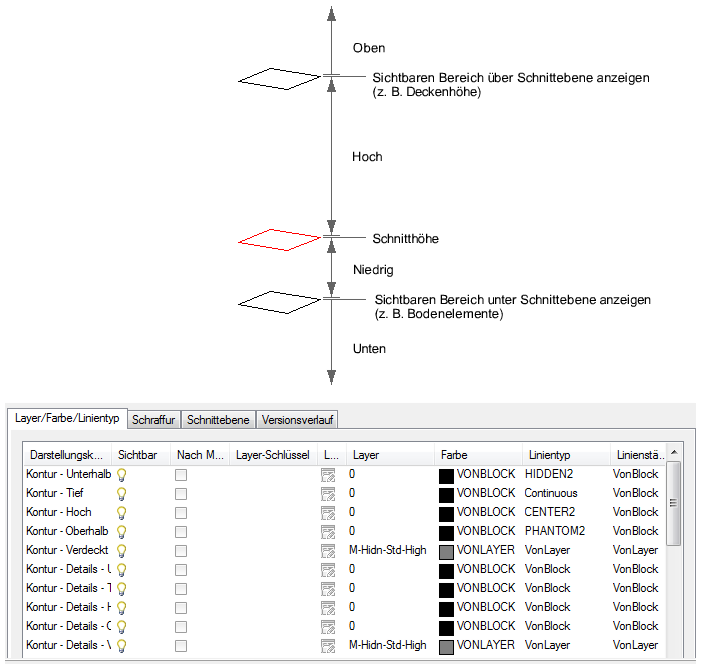 | Definieren der Schnittebenenhöhe für eine beliebige Darstellungskonfiguration |