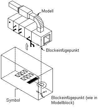 Um die korrekte Darstellung der Symbole beim Hinzufügen in einer Zeichnung zu gewährleisten, sollten Sie alle Geometrien des Symbols auf Layer 0 zeichnen, VONBLOCK für Farb- und Linientyp sowie VONLAYER für Linienstärke zuweisen. Der Einfügepunkt oder Basispunkt wird als Referenz zur Positionierung des Blocks beim Einfügen verwendet. Der Einfügepunkt für den Schemablock sollte dem Einfügepunkt des zugehörigen 3D-Modellblocks entsprechen. Wenn Sie ein MV-Bauteil in einer Zeichnung platzieren, sind alle zugeordneten Blöcke Bauteil eines Objekts. Daher ist ein gemeinsamer Einfügepunkt erforderlich.
