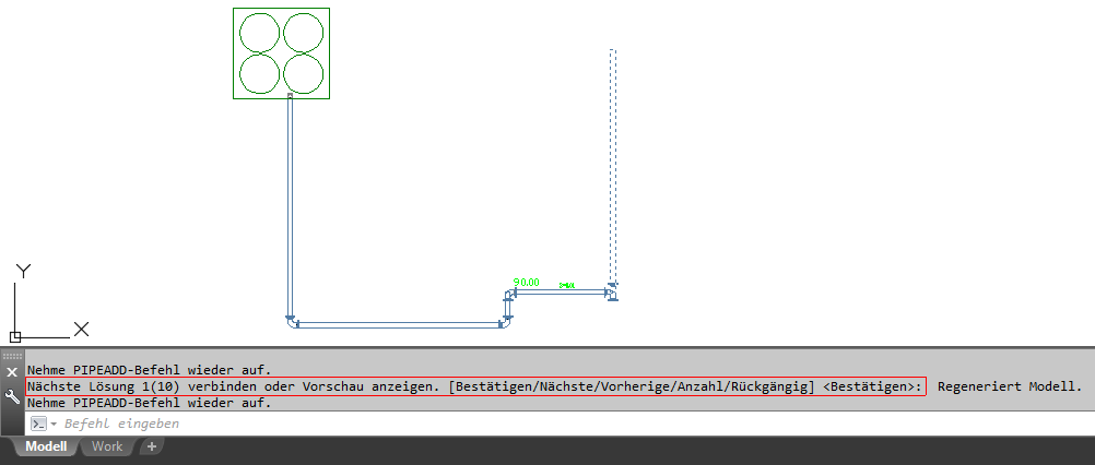 Informationen über das Starten einer Rohrstrecke von einem vorhandenen Rohrobjekt finden Sie unter "Hinzufügen von Rohren mit Griffen" oder "Anschließen an ein vorhandenes Rohr".