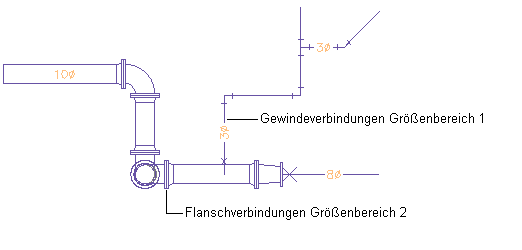 Rohre und Formstücke in einem Größenbereich müssen über gemeinsame Nenngrößen in einer Routing-Voreinstellung verfügen, die Sie in einer Rohrstrecke verwenden können. Die folgenden Bedingungen gelten für Größenbereiche: