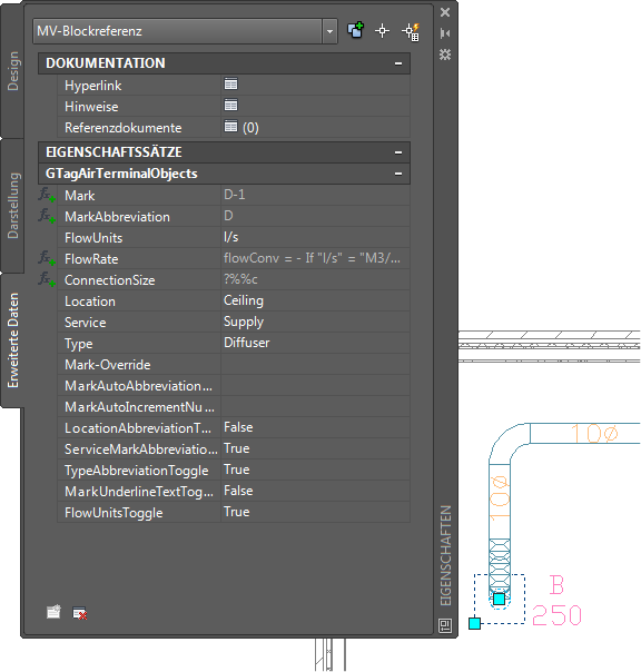 Sie können manuell einige Eigenschaftssatzdaten ändern, nachdem Sie einem Bauteil eine Beschriftung hinzugefügt haben. Wenn der Eigenschaftssatzwert automatisch abgeleitet ist, wie etwa eine Anschlussgröße, muss das Bauteil selbst geändert werden, um den gewünschten Eigenschaftssatzwert zu erzielen.