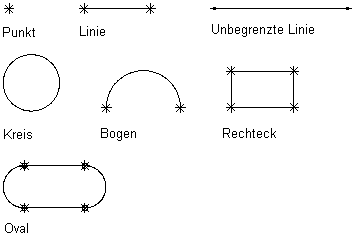 Wird von Linien und Punkten definiert, die beschränkt werden, um auf jeder Seite Anfangs- und Endpunkte sowie einen rechten Winkel zu erhalten.