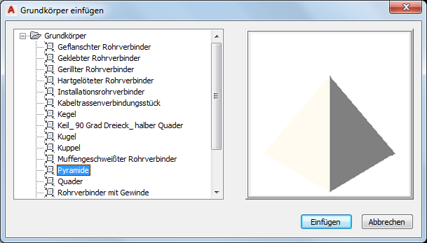 | Zuordnen des Grundkörpers zu einer vorhandenen Arbeitsebene | Wählen Sie im Modellbereich die Arbeitsebene aus. |