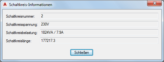 Anmerkung: Wenn Sie die Elektro-Projektdatenbank in der aktuellen Zeichnung erneut geladen haben, entspricht die Schaltkreisbelastung der Gesamtbelastung aller dem Schaltkreis zugewiesenen Geräte. Die einzelnen Geräte, die zur Gesamtbelastung beitragen, können sich in verschiedenen Zeichnungen befinden.