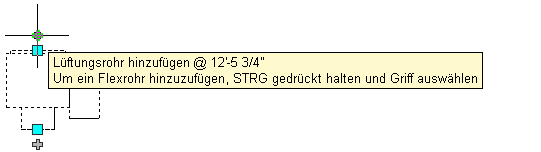 | Zeichnen eines Luftkanals/-rohrs direkt an einem MV-Bauteil | Wählen Sie das MV-Bauteil aus, und klicken Sie auf den Griff zum Hinzufügen des Anschlusses, von dem aus Sie zeichnen möchten. ![]() |