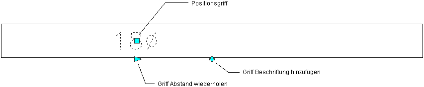 Wenn Sie in Ihre Zeichnung eine Beschriftung eingefügt haben, können Sie einen neuen Stil anwenden, die Abstände entlang dem Objekt ändern oder die Anzeige ändern. Sie können Griffe benutzen, um einzelne Beschriftungen einem Objekt hinzuzufügen oder zu entfernen oder eine Beschriftung bezüglich des Objekts zu versetzen.