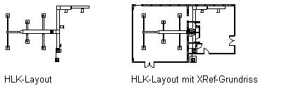 Sie können mit einer Zeichnung beginnen, welche die Wände und andere räumliche Elemente enthält, die Sie benötigen, indem Sie ihr eine andere Zeichnung, eine sogenannte referenzierte Zeichnung oder XRef, zuordnen. XRefs sind Zeichnungen, die mit der aktuellen Zeichnung verbunden sind und in ihr angezeigt werden.