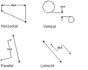Kann für Geometriepaare jedes Typs festgelegt werden. Legt einen Wert zwischen zwei Merkmalen in einer horizontalen Richtung fest. Der Wert einer Abstandsbemaßung kann nicht negativ sein.