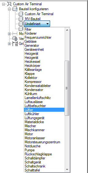 - Wählen Sie unter Bauteiltyp Luftauslass aus.